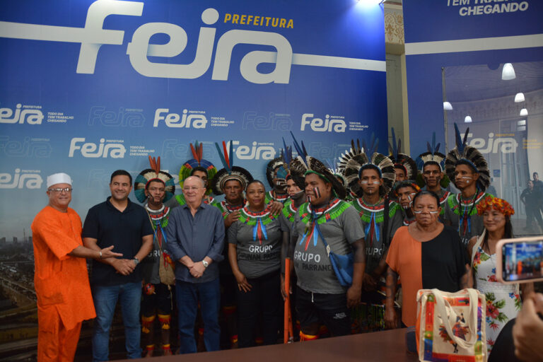 A manhã desta segunda-feira (13) foi marcada por um encontro cultural no Paço Municipal Maria Quitéria, em Feira de Santana. O prefeito José Ronaldo recebeu integrantes do grupo Arunan Parrancó, representantes da etnia indígena Kariri-Xokó, oriunda de Alagoas.